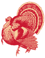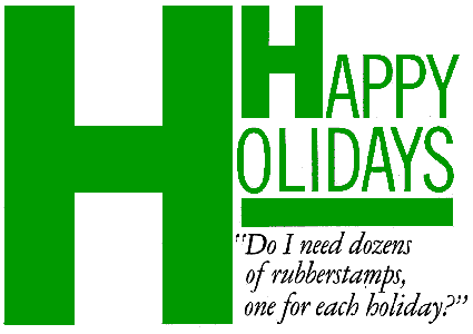 | The July 4 theme will adapt very nicely to Labor Day, Memorial Day and other festive national holidays. Should you wish to limit yourself to a single stamp, a frog, stamped in red and blue on white paper and circumscribed Hoppy Fourth of July might capture the mood. On Halloween, when witches ride, stamps can personalize the trick-or-treat bags, adorn the party invitations, and even decorate your door. Witches, cats, pumpkins, and brooms fit the mood, and white shelf paper taped over your door will welcome visiting goblins. Even our friend the frog will work: stamp him in black, then draw (or stamp) a simple witch's hat behind or below him. Feathers, Indians, a Pilgrim silhouette, a turkey - wrap your hostess gift for Thanksgiving Day in plain white paper stamped with a symbol of the occasion. It is not easy to fit our friend the frog to this occasion, but another very useful, very versatile stamp, Perfect for the day is |