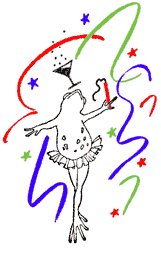 | Christmas, Hannukkah, and New Year's come replete with symbols - stars, candles, trees. Those same stars that in red and blue decorated your 4th of July invitations can reappear in red and green on the packages you wrap, the gift cards, the Christmas cards themselves, even on fabric for napkins or tablecloths. Now, about the frog. This is realIy hokey, but red and green frogs leaping about your wrapping paper, with Hoppy Holidays written here and there among them, do capture the slightly wacky feeling of the festive season. | |||||||||||||||||||||||||||||||